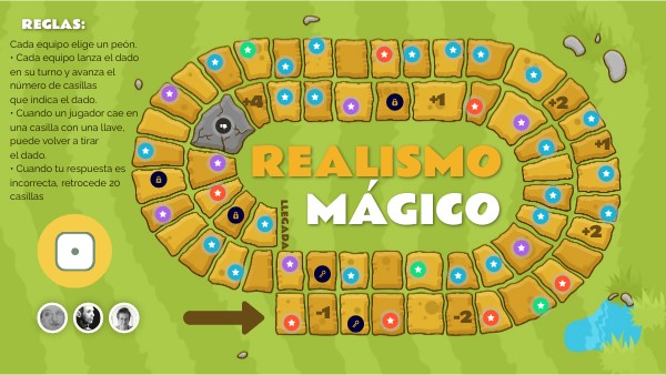 Cada equipo elige un peón.• Cada equipo lanza el dado en su turno y avanza el número de casillas que indica el dado. • Cuando un jugador cae en una casilla con una llave, puede volver a tirar el dado. • Cuando tu respuesta es incorrecta, retrocede 20 casillas