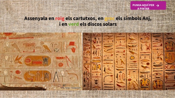 Assenyala en roig els cartutxos, en groc els símbols Anj, i en verd els discos solars