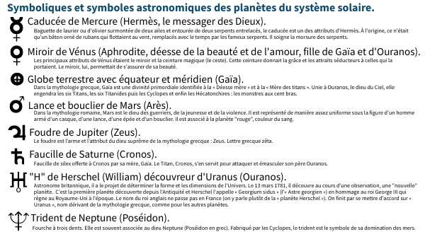 Symboliques et symboles astronomiques des planètes du système solaire.