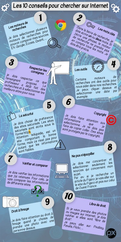 Je dois faire attention aux informations que je sélectionnne. Je ne dois pas faire de copier coller. Des sites sont protégés par le copyright.