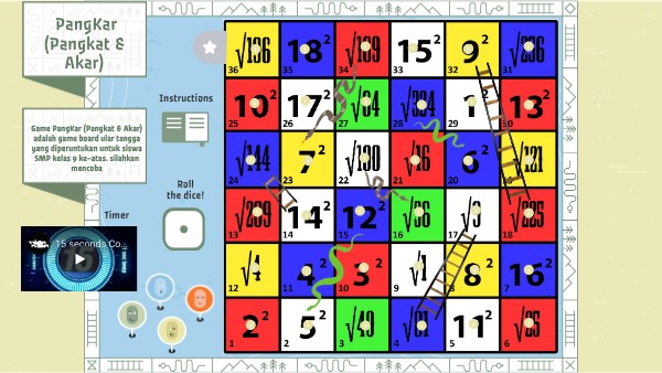 Game PangKar (Pangkat & Akar) adalah game board ular tangga yang diperuntukan untuk siswa SMP kelas 9 ke-atas. silahkan mencoba