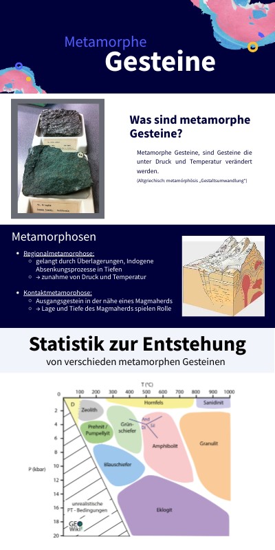 Metamorphe Gesteine, sind Gesteine die unter Druck und Temperatur verändert werden.