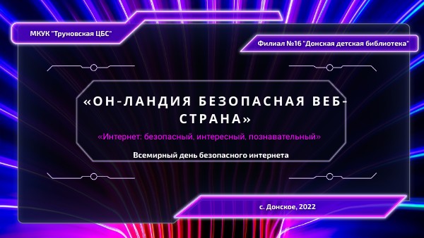 Донская детская библиотека предлагаем вам пройти онлайн - квиз «Он-ландия безопасная Веб-страна». Он поможет оценить ваши знания, а также навыки грамотного и безопасного использования интернета.
