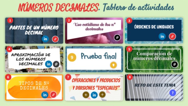 NÚMEROS DECIMALES. Tablero de actividades