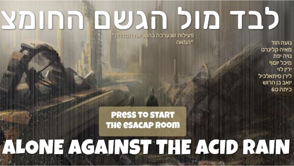 עכשיו הגיע הרגע המכריע איספו את כל הקודים שקיבלתם במהלך החדר היעזרו בטבלת הגימטריה וחשבו את הערך של כל אחד המהמספרים כעת אתם אמורים לקבל 8 אותיות נסו להרכיב מהם צירוף בעל 2 מילים והוא יהיה הקוד הסופי שלכם למקלט על מנת להציל את חבורת הילדים מהגשם הקפידו על רווח בין שתי המילים