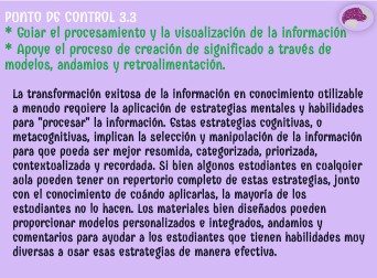 PUNTO DE CONTROL 3.3 * Guiar el procesamiento y la visualización de la información * Apoye el proceso de creación de significado a través de modelos, andamios y retroalimentación.