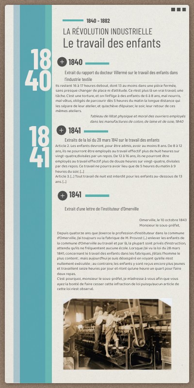 Depuis quatorze ans que j’exerce la profession d’instituteur dans la commune d’Omerville, j’ai toujours vu la fabrique de M. Provost (…) enlever les enfants de la commune d’Omerville au travail et par là, la plupart sont privés d’instruction, attendu qu’ils ne fréquentent aucune école. Lorsque j’ai vu la loi du 28 mars1841, concernant le travail des enfants dans les fabriques, j’étais l'homme le plus content ; mais aujourd’hui je suis désespéré en voyant qu’elle n’est nullement exécutée ; au contraire, les enfants y sont reçus encore plus jeunes et travaillent seize heures par jour et n’ont qu’une heure un quart pour faire deux repas.C’est pourquoi, monsieur le sous-préfet, je m’adresse à vous afin que vous ayez la bonté de faire cesser cette infraction de loi puisqu’aucun article de cette loi n’est observé.