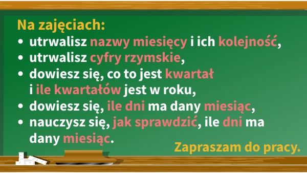 - utrwalisz nazwy miesięcy i ich kolejność,