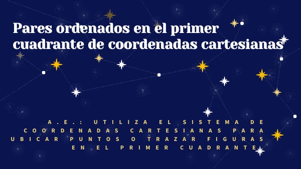 A.E.: Utiliza el sistema de coordenadas cartesianas para ubicar puntos o trazar figuras en el primer cuadrante.