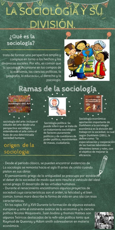 Sociología económica: aportación importante de Durkheim a la sociología económica es la división del trabajo en la sociedad, la cual según Durkheim (2001), la define como: “la especialización y cooperación de las fuerzas laborales en diferentes tareas y roles, con el objetivo de mejorar la eficiencia.
