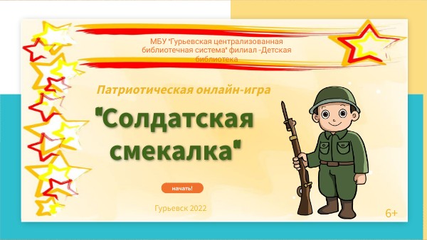 Правила игры: Чтобы пройти Игру «Солдатская смекалка»,нужно поэтапно проходить миссии. По завершению миссии, игрок получает ключ-цифру, которую нужно запомнить. После прохождения всех миссий, игрок нажимает "Конец игры" где нужно вбить ключ-цифру, по порядку, и Игра"Солдатская смекалка" завершиться! Удачи!