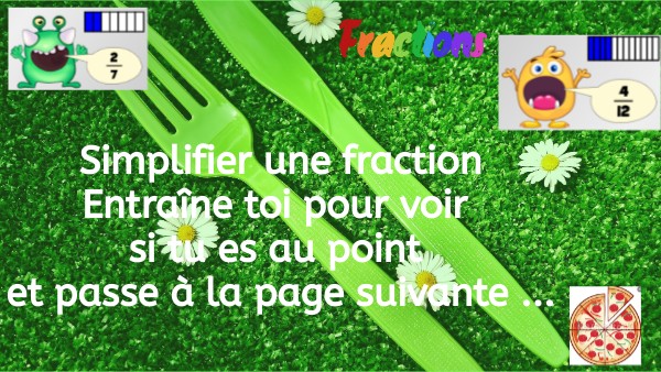 Simplifier une fraction Entraîne toi pour voir si tu es au point et passe à la page suivante ...