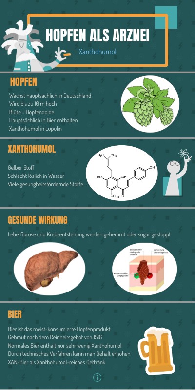 Bier ist das meist-konsumierte Hopfenprodukt Gebraut nach dem Reinheitsgebot von 1516 Normales Bier enthält nur sehr wenig Xanthohumol Durch technisches Verfahren kann man Gehalt erhöhen XAN-Bier als Xanthohumol-reiches Gettränk