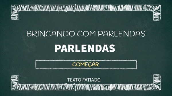 O texto poético apresenta-se em versos e estes agrupam-se, muitas vezes, em estrofes. A PARLENDA É UM TEXTO POÉTICO, QUE NO UNIVERSO INFANTIL SE TORNA brincadeiras com as palavras, E ASSIM, BRINCANDO COM OS SONS E RITMOS DAS PALAVRAS DE TEXTOS DE FÁCIL MEMORIZAÇÃO AS CRianças começam a refletir sobre o sistema de escrita. então, vamos brincar com parlendas?