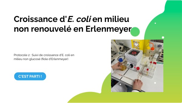 Protocole 2 : Suivi de croissance d'E. coli en milieu non glucosé (fiole d'Erlenmeyer)