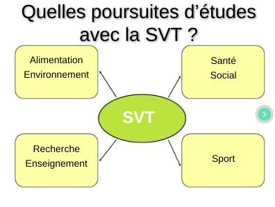 - La spécialité SVT est particulièrement recommandée si vous vous destinez aux professions médicales et paramédicales, vétérinaires, comme aux professions liées à l’hygiène et à la sécurité, à la géologie, à la prospection et à l’exploitation des ressources naturelles, à l’aménagement du territoire, mais également à l’architecture et à l’urbanisme, à l’agronomie et au sport.