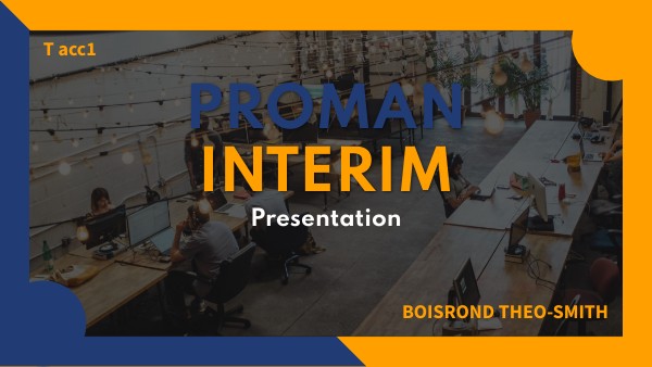 Mon stage s’est déroulé à l’agence PROMAN de La Plaine Saint-Denis. Nous sommes 4 personnes dans l’agence : Sandra (Responsable de l’agence), Laetitia et Vidya (Assistante d’agence),et moi. Chez PROMAN, comme dans toutes les agences d’intérim, 3 acteurs sont en jeu. Il y a l’agence d’intérim, les intérimaires, et le client (l’entreprise utilisatrice) qui émet ses demandes. PROMAN possède un réseau national de 660 agences en france comme a l'etranger . Les différents services sont les équipes comptables, le contrôle de gestion, le service formation, le service clients, la direction commerciale, la direction d’exploitation, la direction développement, etc.