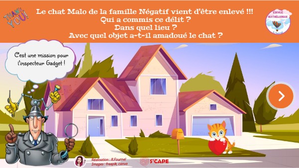 Le chat Malo de la famille Négatif vient d'être enlevé !!! Qui a commis ce délit ?Dans quel lieu ? Avec quel objet a-t-il amadoué le chat ?