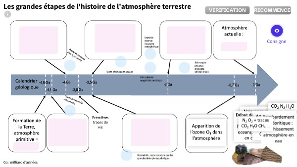 Frise chronologique de l'histoire de l'atmosphère terrestre, à reconstituer. Cette frise est la tâche finale de l'escape game AtmoChrono.