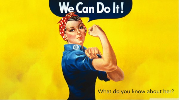 Rosie the Riveter is an allegorical cultural icon in the USA who represents the women who worked in factories during World War II. They produced munitions and war supplies.These women took entirely new jobs replacing the male workers who joined the military.