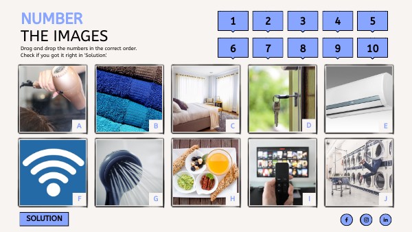 Drag and drop the numbers in the correct order.Check if you got it right in 'Solution'.