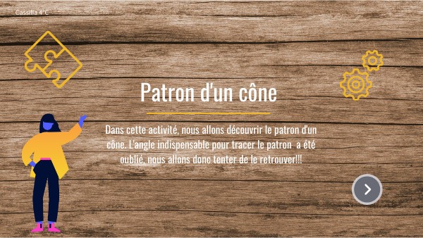 Dans cette activité, nous allons découvrir le patron d'un cône. L'angle indispensable pour tracer le patron a été oublié, nous allons donc tenter de le retrouver!!!