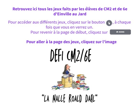 Retrouvez ici tous les jeux faits par les élèves de CM2 et de 6e d'Einville au Jard
