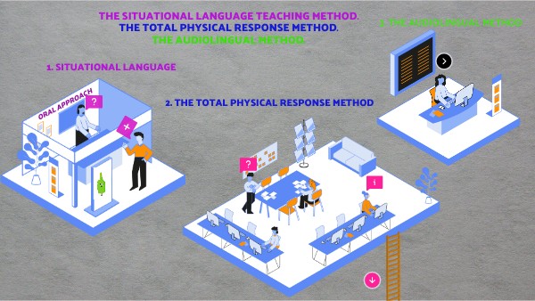 The situational language teaching method.the total physical response method. the audiolingual method.