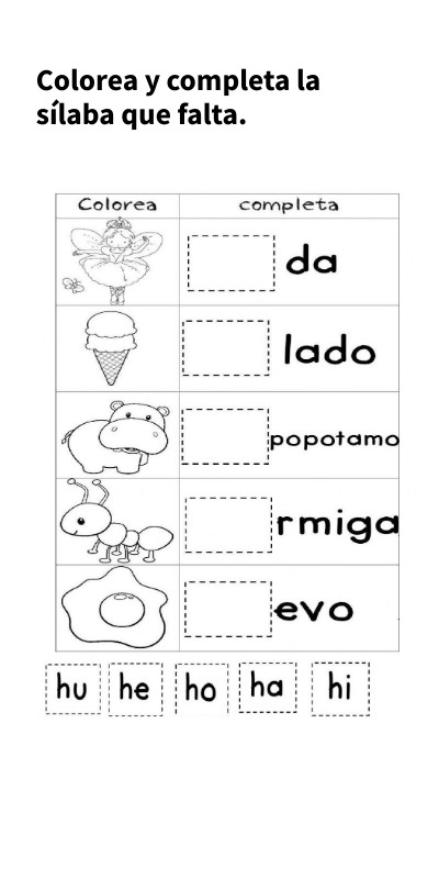Colorea y completa la sílaba que falta.