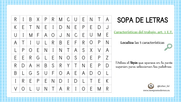SOPA DE LETRAS: Características del trabajo regulado en el Estatuto