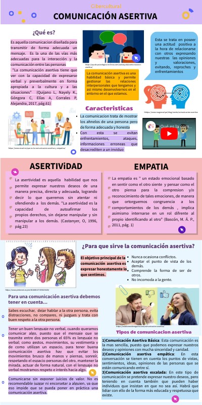 Quijano León, Nayely K., Góngora Coronado, Elías Alfonso, Corrales Pérez, Alejandra EMPATÍA, COMUNICACIÓN ASERTIVA Y SEGUIMIENTO DE NORMAS. UN PROGRAMA PARA DESARROLLAR HABILIDADES PARA LA VIDA. Disponible en: https://www.redalyc.org/articulo.oa?id=29251161005 Castanyer, O. (1996). La asertividad. Expresión de una sana autoestima. Bilbao: Descleé de Brouwer.