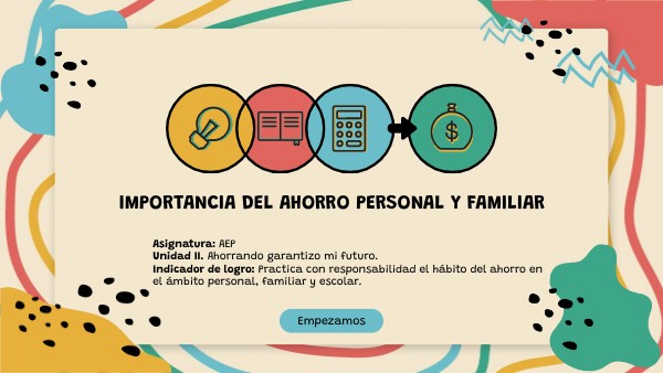Asignatura: AEP Unidad II. Ahorrando garantizo mi futuro. Indicador de logro: Practica con responsabilidad el hábito del ahorro en el ámbito personal, familiar y escolar.