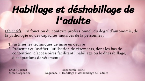 1ASSP1 grpe2 Ergonomie-Soins Mme Carpentier Séquence 4 : Habillage et déshabillage de l'adulte