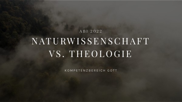 Koexistenz (Beispiel Hai und Löwe: ebenbürtige Raubtiere, unterschied-liche Jagdgebiete) Wissenschaft objektiv Naturgesetze, Kausalprinzip, aus der Beobachtung abgeleitet Theologie rein subjektiv Frage nach der genauen Gestaltung des Daseins
