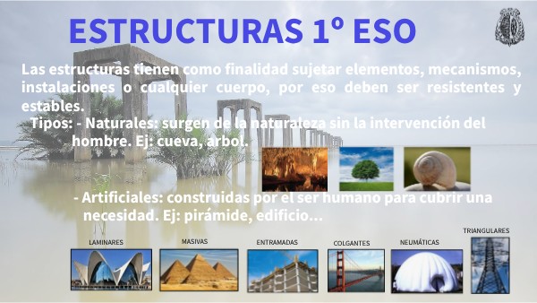 Tipos: - Naturales: surgen de la naturaleza sin la intervención del hombre. Ej: cueva, arbol. - Artificiales: construidas por el ser humano para cubrir una necesidad. Ej: pirámide, edificio...