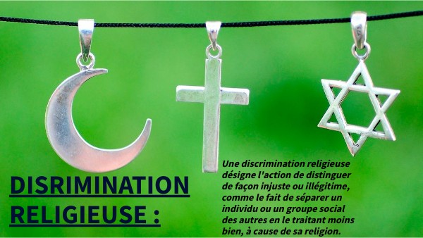 Une discrimination religieuse désigne l'action de distinguer de façon injuste ou illégitime, comme le fait de séparer un individu ou un groupe social des autres en le traitant moins bien, à cause de sa religion.