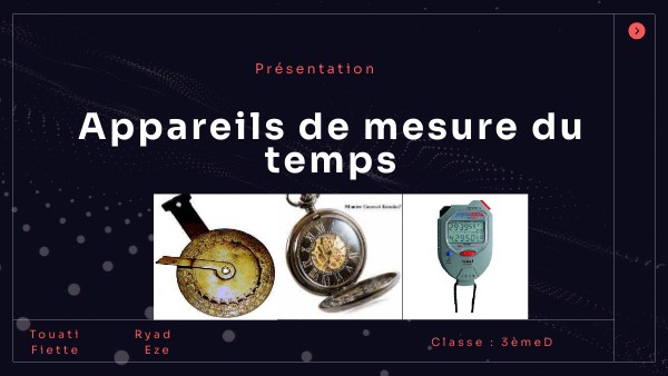 Le temps est une continuité indéfinie. La valeur numérique du temps est le nombre qui fixe la relation entre le avant ou le après. Le dispositif qui permet de réaliser la mesure est un instrument de mesure (ou appareil de mesure). Ces appareils de mesure changent aux fils des générations.