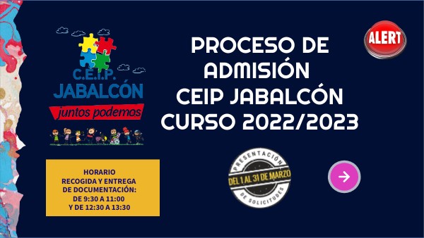 PROCESO DE ADMISIÓN CEIP JABALCÓN CURSO 2022/2023