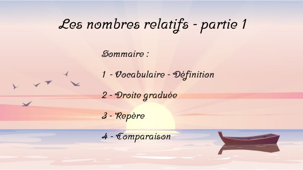 Sommaire : 1 - Vocabulaire - Définition 2 - Droite graduée 3 - Repère 4 - Comparaison