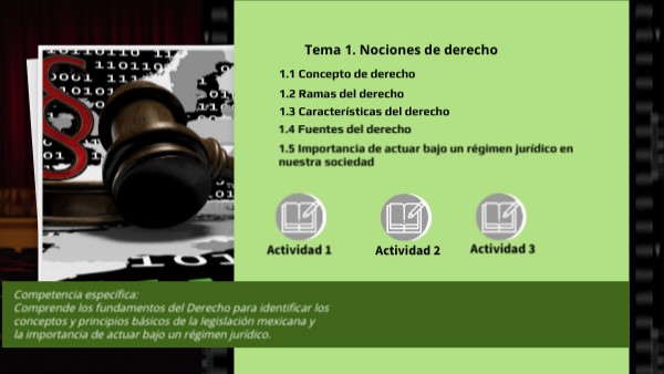 Competencia específica: Comprende los fundamentos del Derecho para identificar los conceptos y principios básicos de la legislación mexicana y la importancia de actuar bajo un régimen jurídico.
