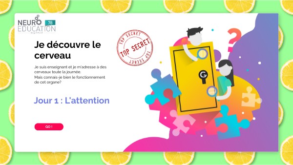 Ce jeu a été conçu pour être réalisé sur 5 jours. Une épreuve vous sera donc envoyée chaque jour de la semaine du cerveau, du 14 au 18 mars. Vous trouvez ici cinq entrées cognitives qui nous questionnent le plus souvent. A l'issue de chaque jour, des pistes de mises en oeuvre vous attendent.. Belle découverte !