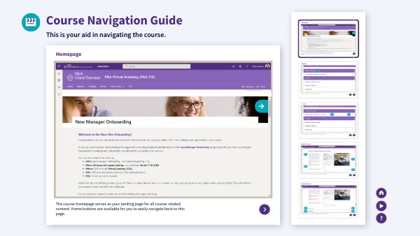The course homepage serves as your landing page for all course-related content. Home buttons are available for you to easily navigate back to this page.