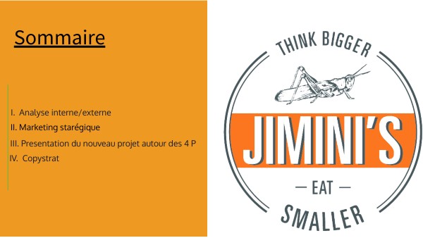 - La promesse de l'axe publicitaire: Jimini's promet des plats gourmands, avec un service de livraison pratique et des expériences culinaire atypiques.