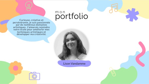 Curieuse, créative et persévérante, je suis passionnée par de nombreux domaines artistiques. J'aimerais rejoindre votre école pour améliorer mes techniques artistiques et développer ma créativité.