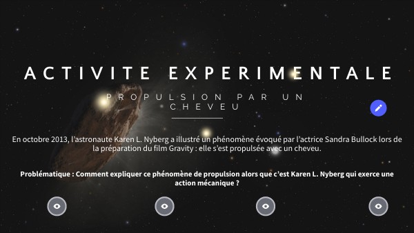 Problématique : Comment expliquer ce phénomène de propulsion alors que c’est Karen L. Nyberg qui exerce une action mécanique ?