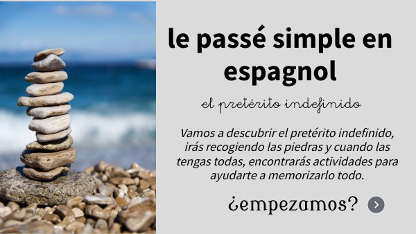 Vamos a descubrir el pretérito indefinido, irás recogiendo las piedras y cuando las tengas todas, encontrarás actividades para ayudarte a memorizarlo todo.