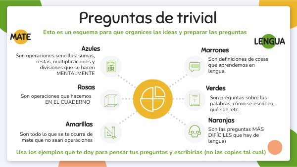 Usa los ejemplos que te doy para pensar tus preguntas y escribirlas (no las copies tal cual)