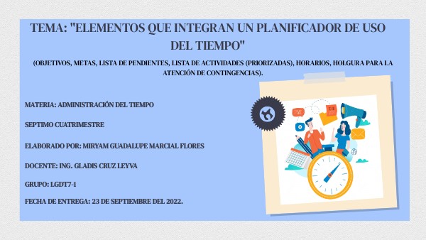 TEMA: "ELEMENTOS QUE INTEGRAN UN PLANIFICADOR DE USO DEL TIEMPO"