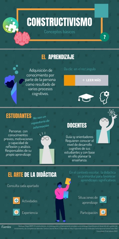 Restrepo, Diego (2017). El constructivismo, la metacognición y el pensamiento complejo como estrategia tripartita para el desarrollo de la gestión del conocimiento y las competencias laborales. Certiuni Journal. Num 3. Disponible en: http://uajournals.com/ojs/index.php/certiunijournal/article/view/262 Consultado 23 de febrero 2022
