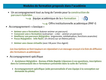 Modules de formation proposés dans l'académie